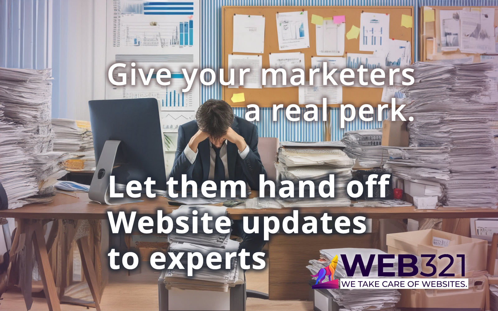 With all of the talk of workplace overload and the heavy job requirements, taking something off of a marketer’s plate provides two big wins: it give the marketer more breathing room to accomplish the important things in their job; and it offers the business owner some continuity on the public face of their brand– their website.